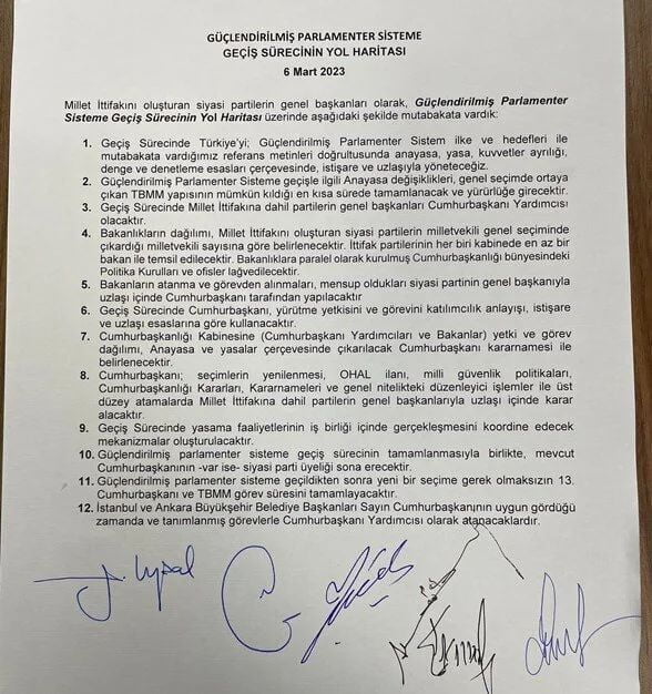 Meral Akşener, geçtiğimiz günlerce 6’lı masadan ayrılma kararı almıştı. Bugün yapılan bir toplantıyla Akşener masaya geri döndü. Geri dönüşün ardından 6’lı masanın cumhurbaşkanı adayı belirlendi. Peki altılı masanın cumhurbaşkanı adayı kim oldu? Millet İttifakı’nın 12 maddesinde neler yer alıyor?